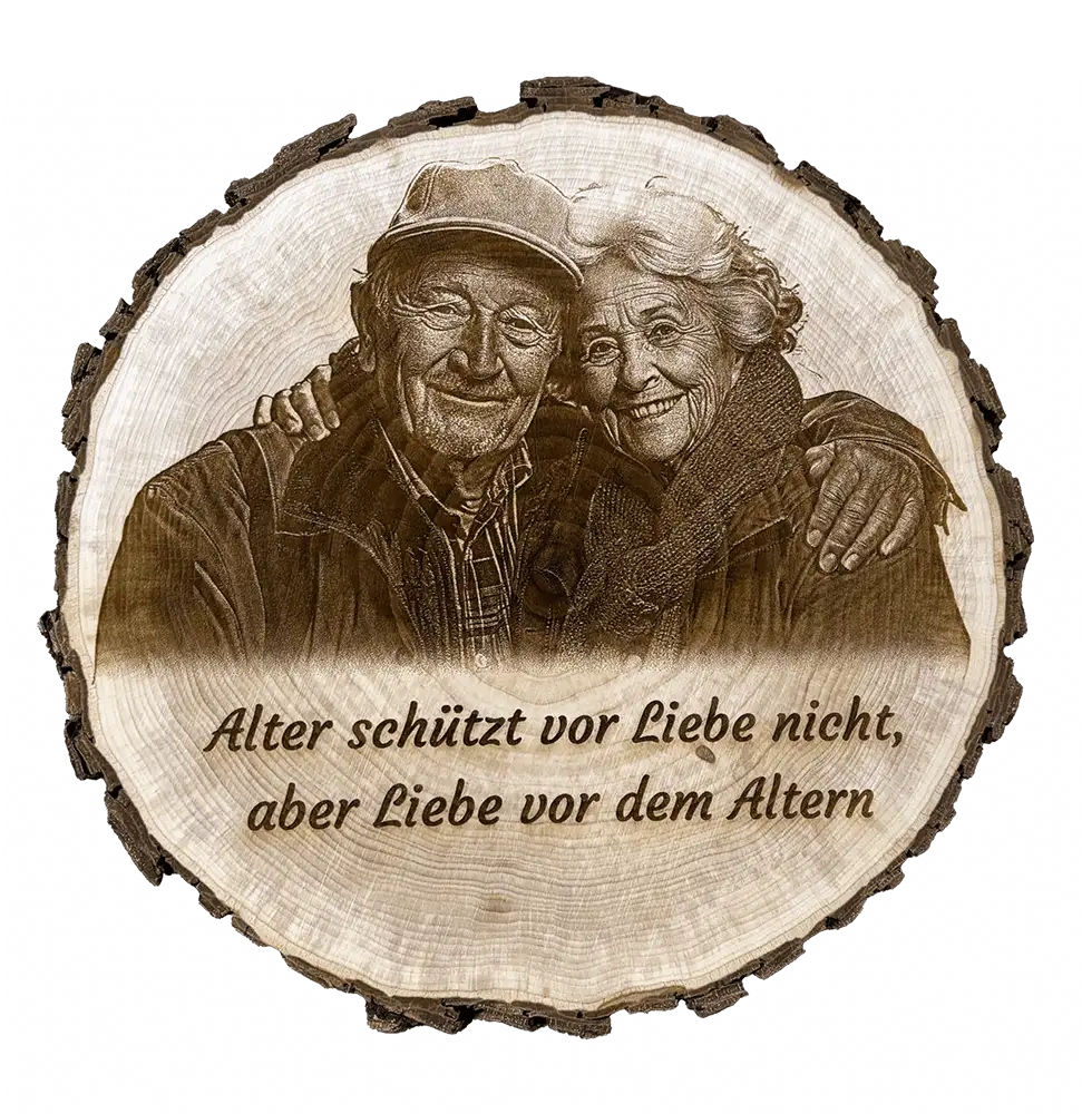 Du möchtest eine Holzscheibe mit Foto oder Holzscheibe mit Bild? Wir gravieren dein Motiv detailgetreu ins Holz – so entsteht ein langlebiges Holzscheibe Foto als persönliches Geschenk oder dekoratives Wandbild.
